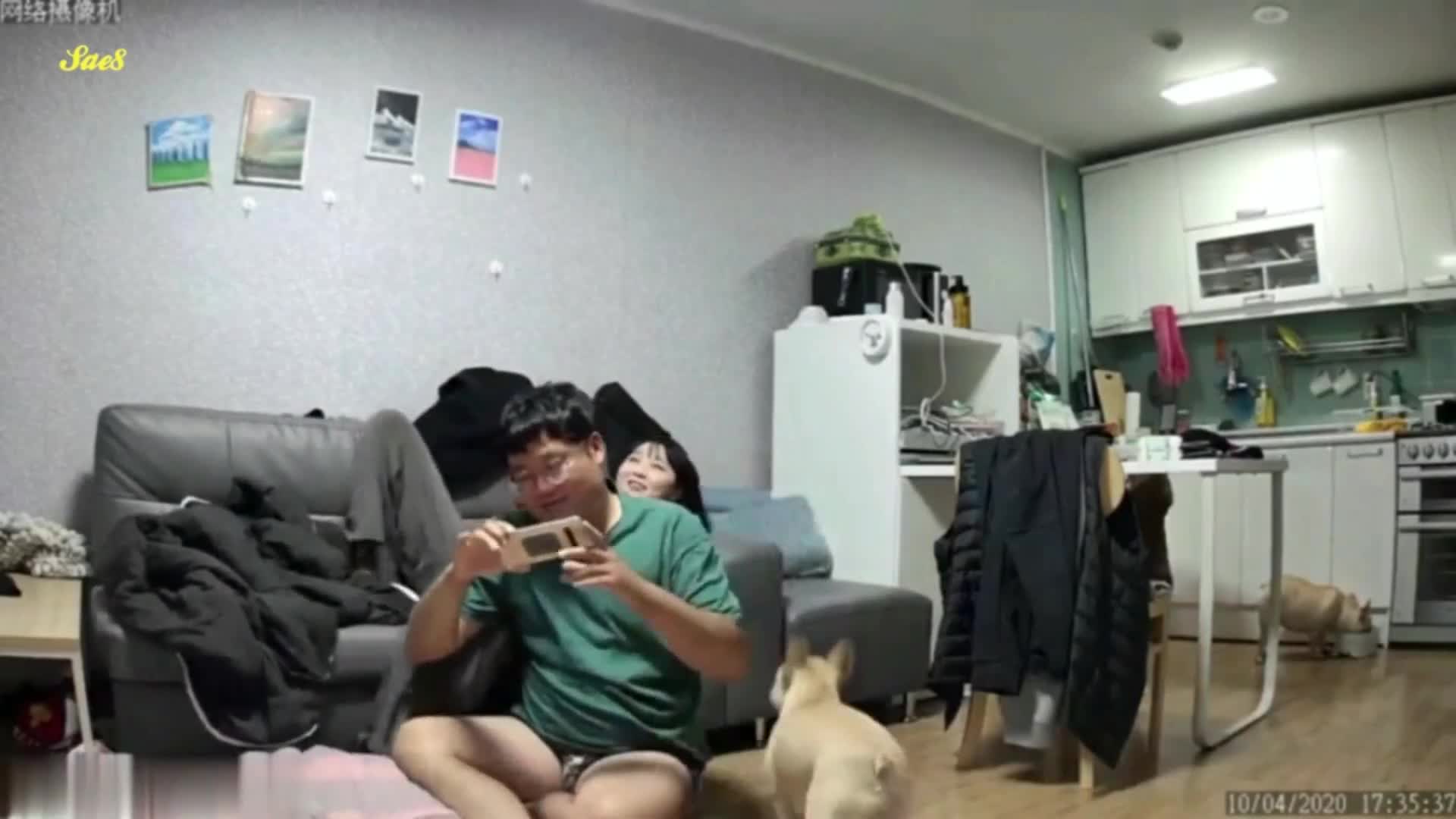 监控偷拍骚妇在家偷汉家里小狗看呆了